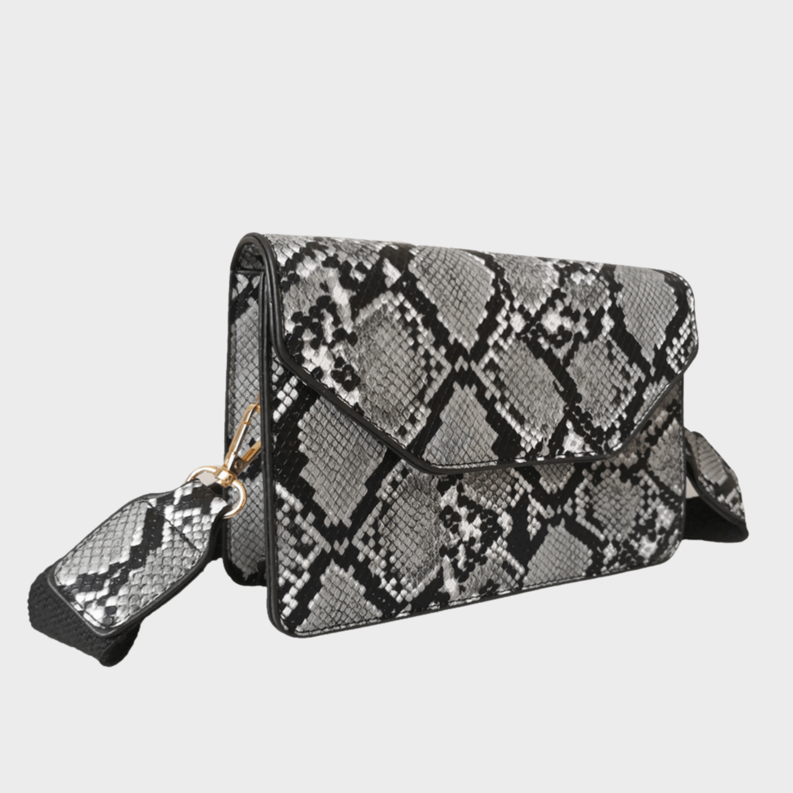 A stylish crossbody with a sleek envelope silhouette and a chic snakeskin-inspired finish. The textured outer adds a touch of sophistication, while the slim shape keeps it elegant and easy to wear. Designed with a secure flap closure and an adjustable strap, it’s perfect for carrying your essentials hands-free, whether you’re heading out for the day or dressing up for the evening.