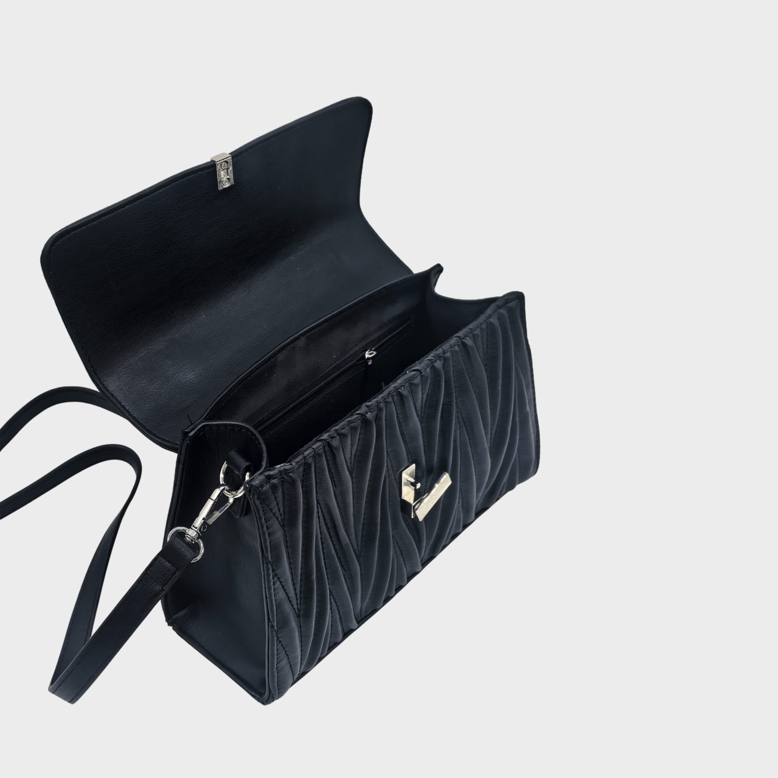 A sleek, everyday shoulder bag with a subtle embossed texture that adds a stylish, modern touch. Designed with a structured shape, it keeps your essentials neatly organised without feeling bulky. The comfortable shoulder strap makes it easy to wear on the go, while the clean, minimalist design pairs effortlessly with any outfit — from casual daytime looks to evening plans.