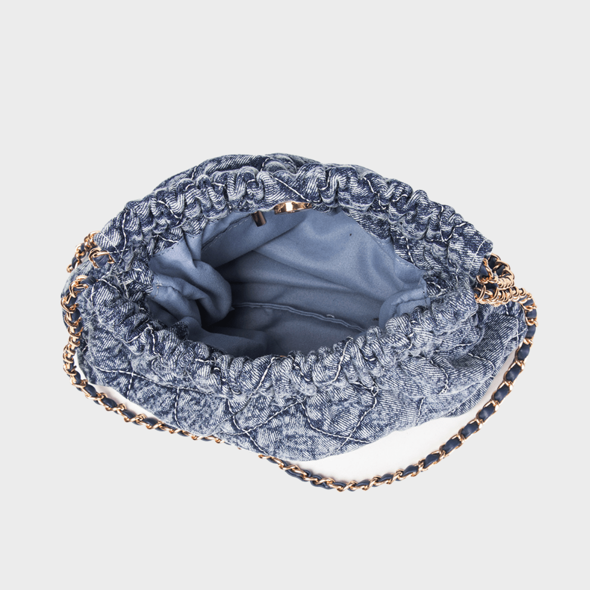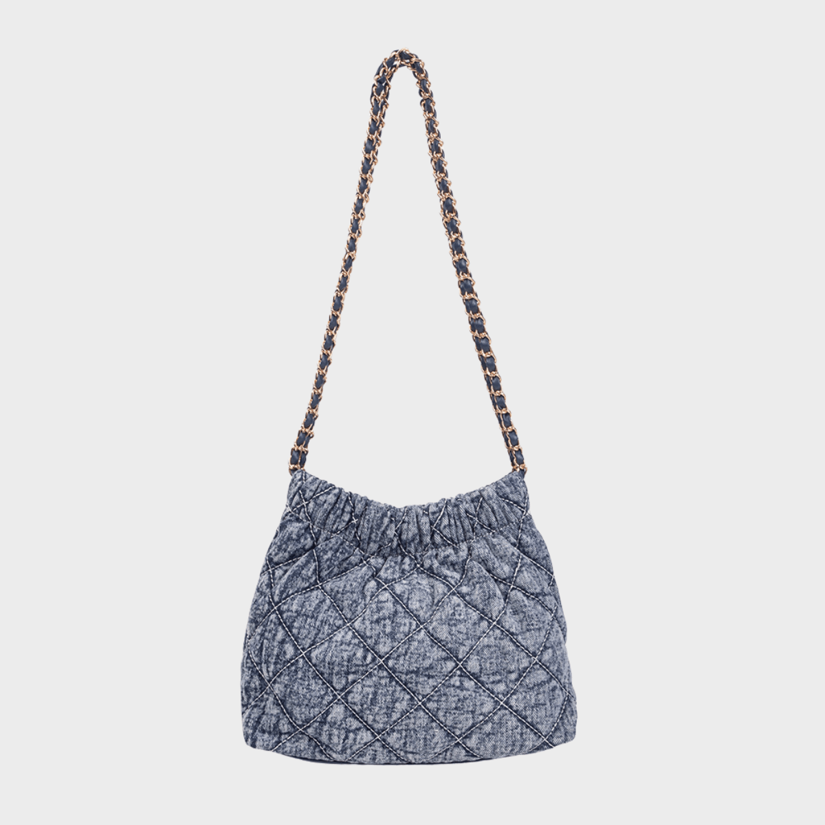 Denim Blue Quilted Chain Shoulder Bag
