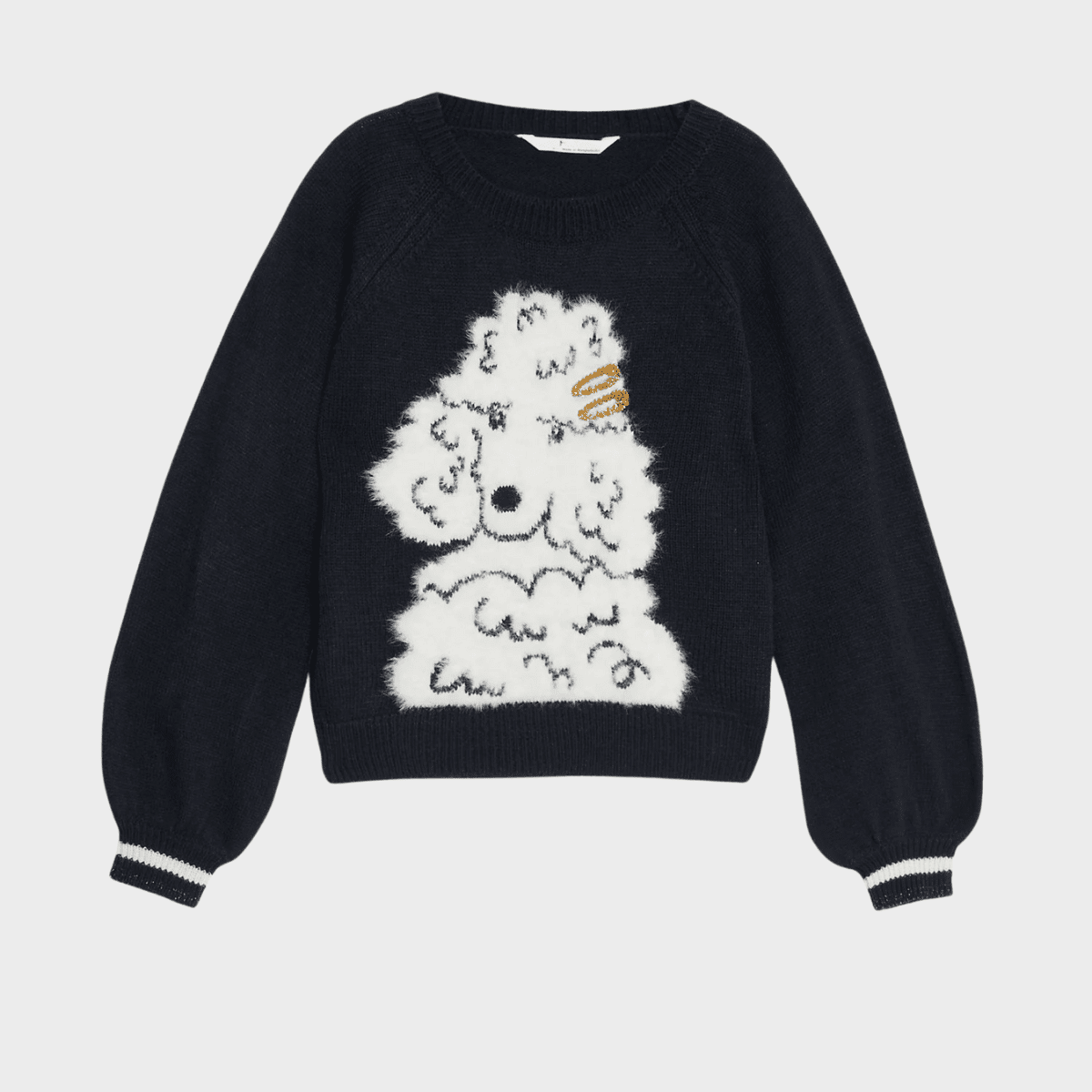 A fun and cosy knitted jumper designed for comfortable everyday wear. Featuring a playful poodle motif, this jumper adds a charming touch to casual outfits while remaining practical and easy to wear for cooler days.