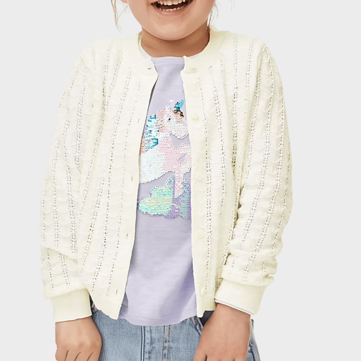 Made from a soft knitted fabric, it provides warmth without feeling heavy and offers a comfortable fit that allows for easy movement. Ideal for pairing with jeans, leggings, or skirts, this jumper works well for school days, playtime, or relaxed outings.