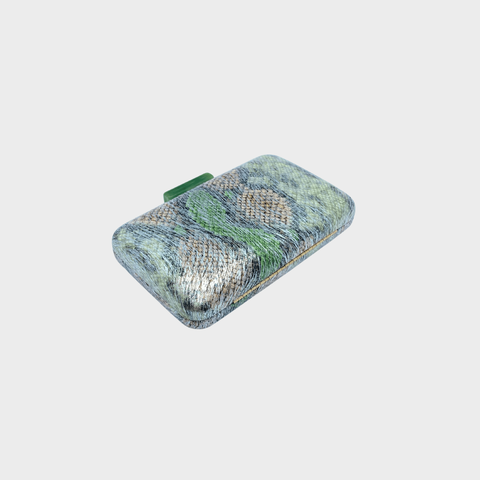A sleek, modern clutch featuring an eye-catching snakeskin-style print that adds a bold edge to any outfit. Its slim, structured silhouette makes it easy to carry, while the smooth finish gives it a polished, stylish look. Perfect for evenings out, special occasions, or adding a standout accessory to a simple outfit. Compact yet practical, it fits all your essentials with ease.