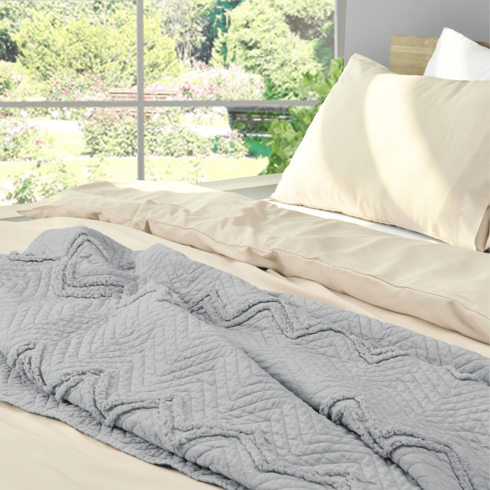 Tufted bedspread measuring 150x200cm, designed to bring texture, comfort and style to any bedroom. The soft fabric features a beautiful tufted pattern that adds subtle detail and a touch of luxury, making it a standout addition to your bedding collection. Perfect for layering over duvets or using on its own during warmer months, it creates a cosy and inviting look that feels effortlessly elegant. Lightweight yet warm, it’s easy to care for and suitable for everyday use. Made from quality materials sourced from well-known suppliers, it offers the same refined finish as high street homeware but at a much lower price. A great-value piece that enhances your bedroom décor with comfort and charm.
