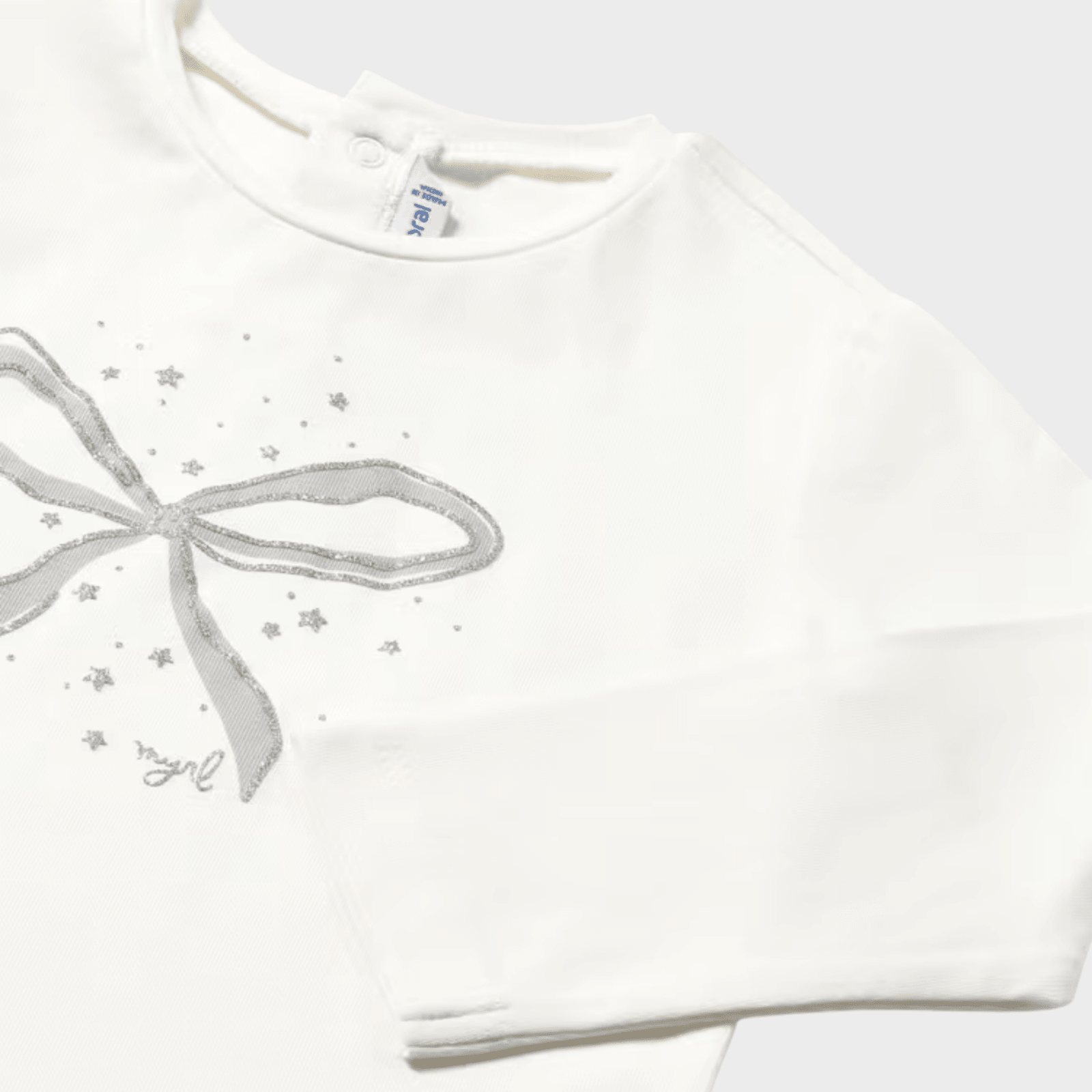 Kids White Bow and Glitter Printed Top (6M - 4Y)