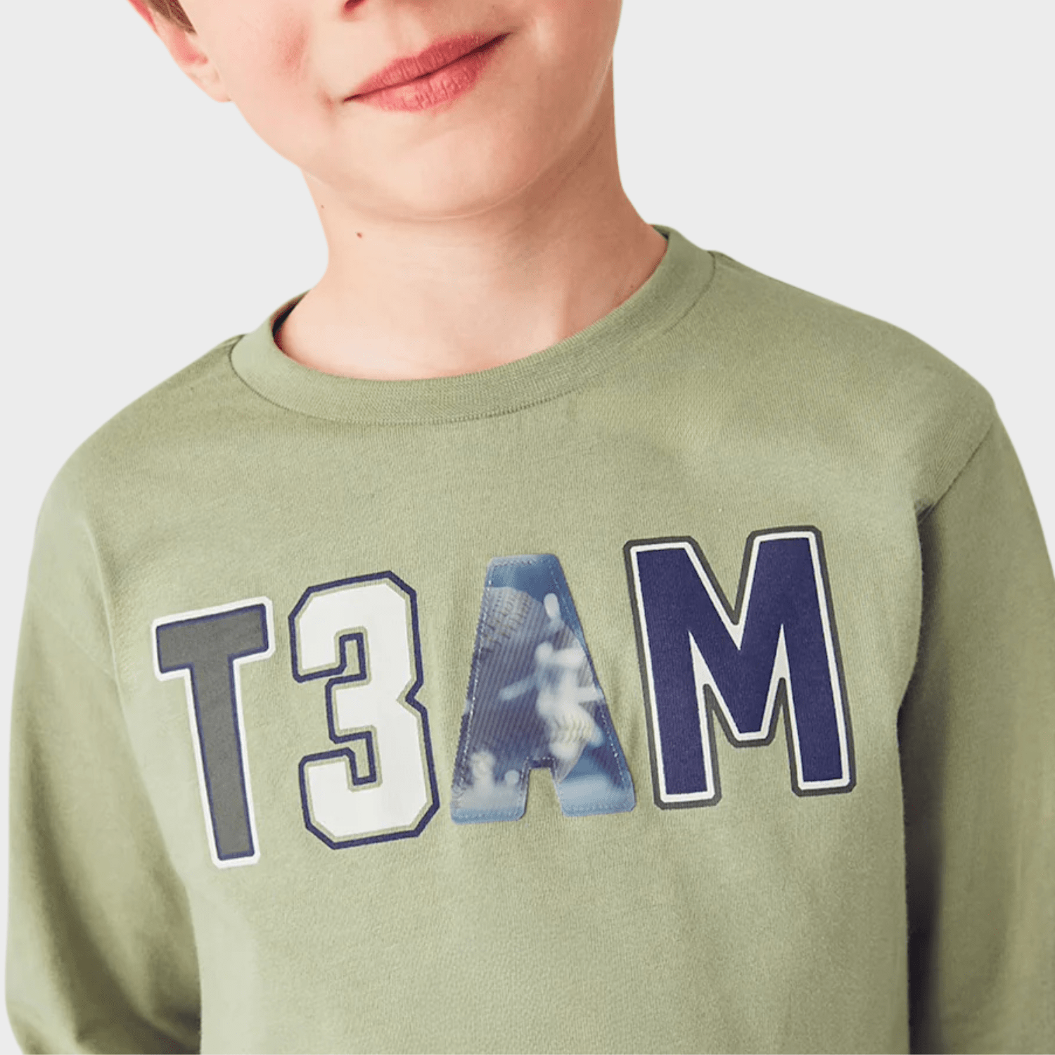 A kids baseball style top designed for comfortable everyday wear with a sporty, casual finish. Made from soft, breathable cotton, this top feels gentle against the skin and is ideal for all day comfort during school days, playtime or relaxed outings. The team baseball inspired design adds a fun, athletic look while remaining easy to style with jeans, joggers or shorts. Lightweight and practical, it can be worn on its own or layered under hoodies and jackets, making it a versatile everyday essential. Sourced as a great value cut label product from brands and big businesses for much less than RRP, this kids baseball top delivers dependable comfort at a cheaper price, helping refresh their wardrobe while saving money.