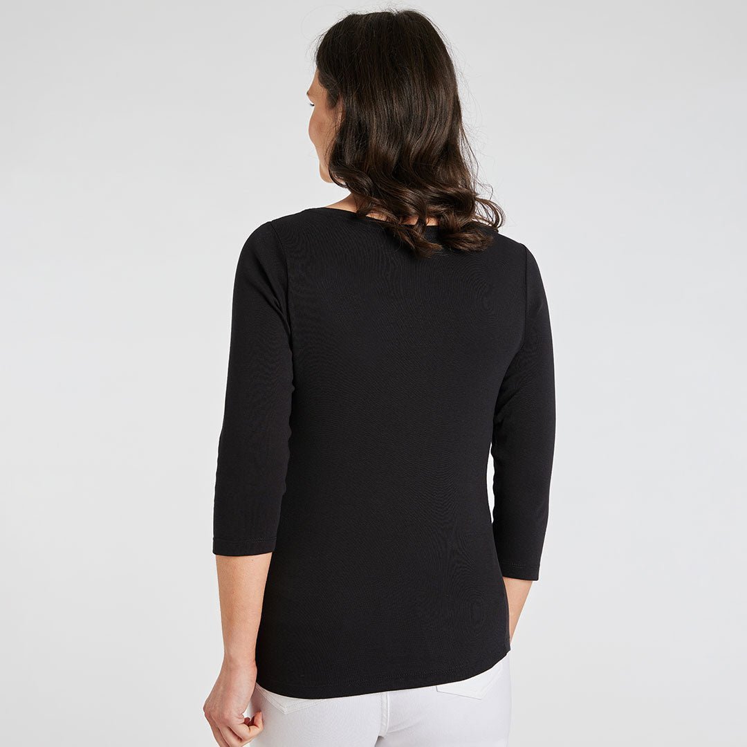 Ladies Black 3/4 Sleeve Slash Neck Top