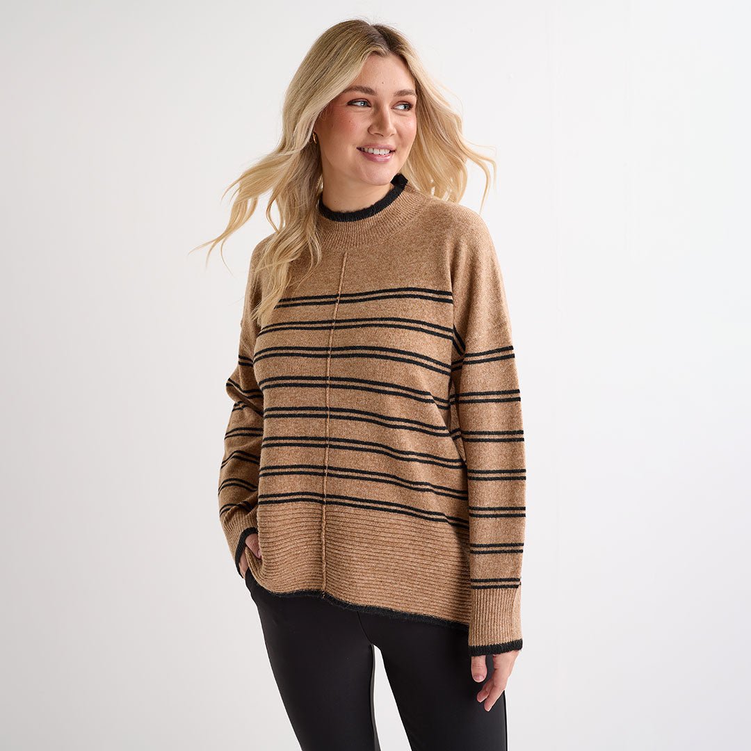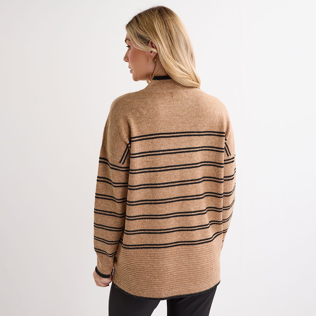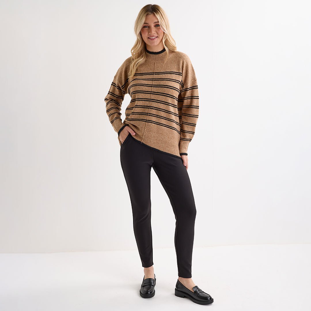 This is the kind of wardrobe staple that works for almost any season and gives you a smart yet relaxed look without effort. The soft knit makes it comfortable to wear all day, while the easy pull-on style means it is practical too. The striped pattern and simple detailing keep it classic and versatile, so it can be dressed up or kept casual depending on the occasion. This is the sort of piece you’ll find yourself reaching for again and again because it goes with everything from jeans to skirts.