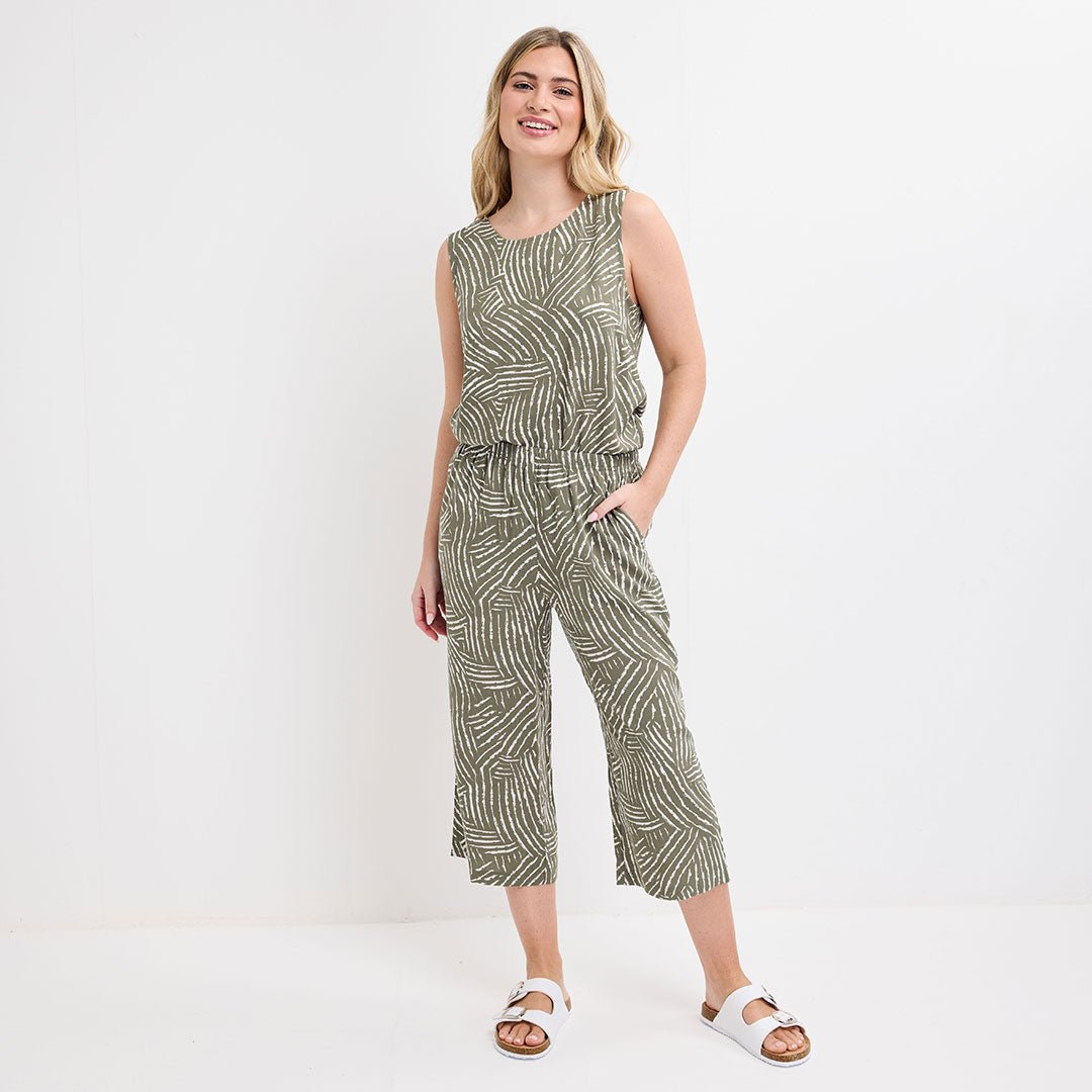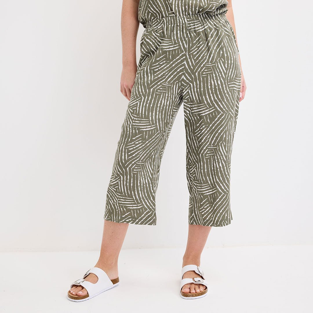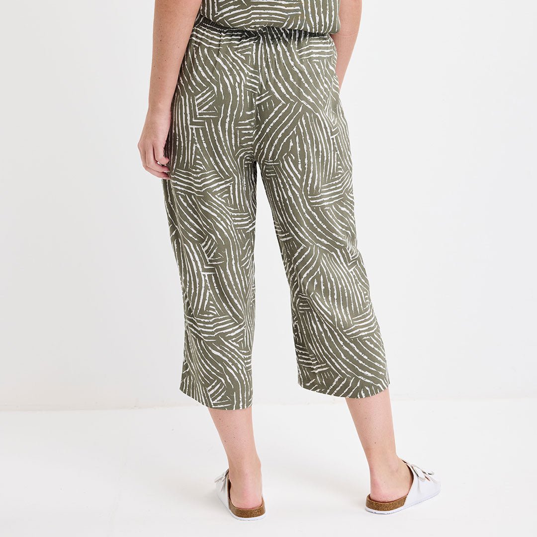 Ladies Khaki Printed Crop Trouser