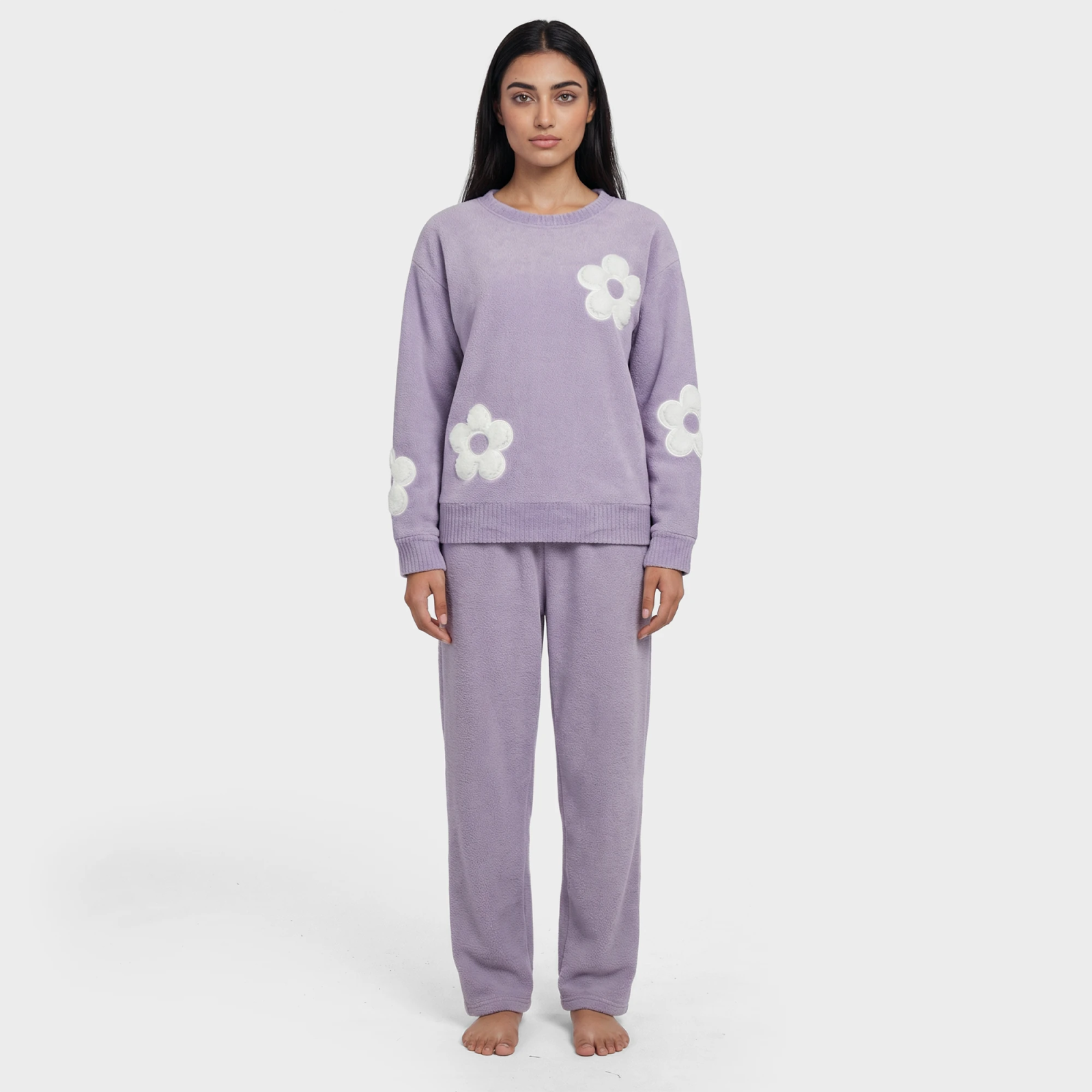 A soft loungewear set featuring a gentle floral design, created for relaxing in comfort while enjoying great value. The cosy feel and easy-care fabric make it a brilliant everyday choice, helping you unwind for less without compromising on style or comfort.