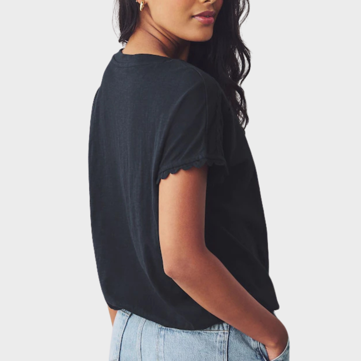 Ladies Bubble Hem Navy Tie Top