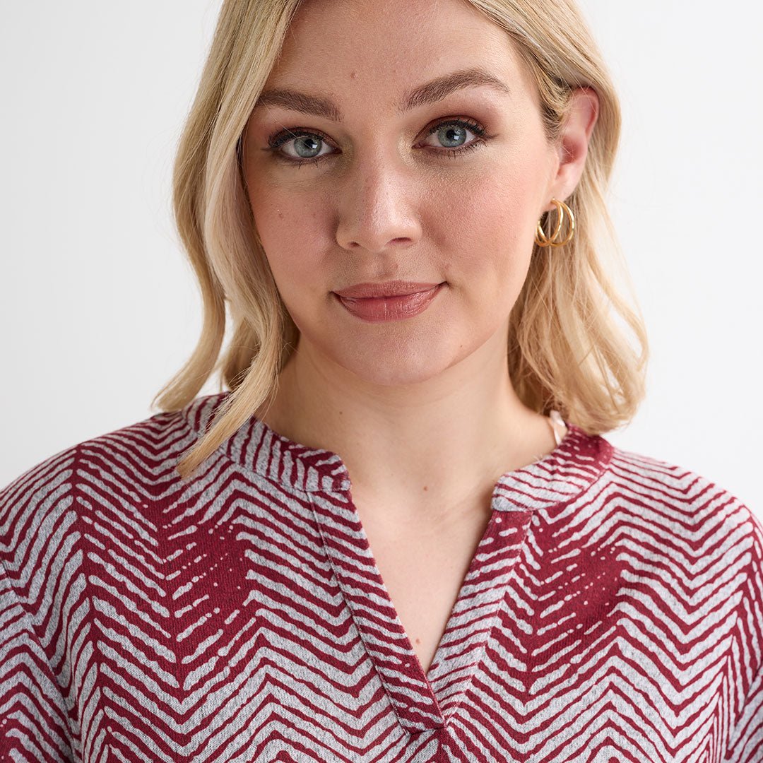 Ladies herringbone top. A smart and versatile piece with a subtle textured design, this top is perfect for both everyday wear and more polished occasions. Made from 100% polyester, it is lightweight, comfortable and easy to care for, making it a reliable choice for regular use. The herringbone pattern adds a classic touch that pairs well with trousers, skirts or jeans, giving you flexibility in styling. As a cut-label product, it delivers the same quality you would expect from high street fashion but at a much lower price, offering great value without compromise.