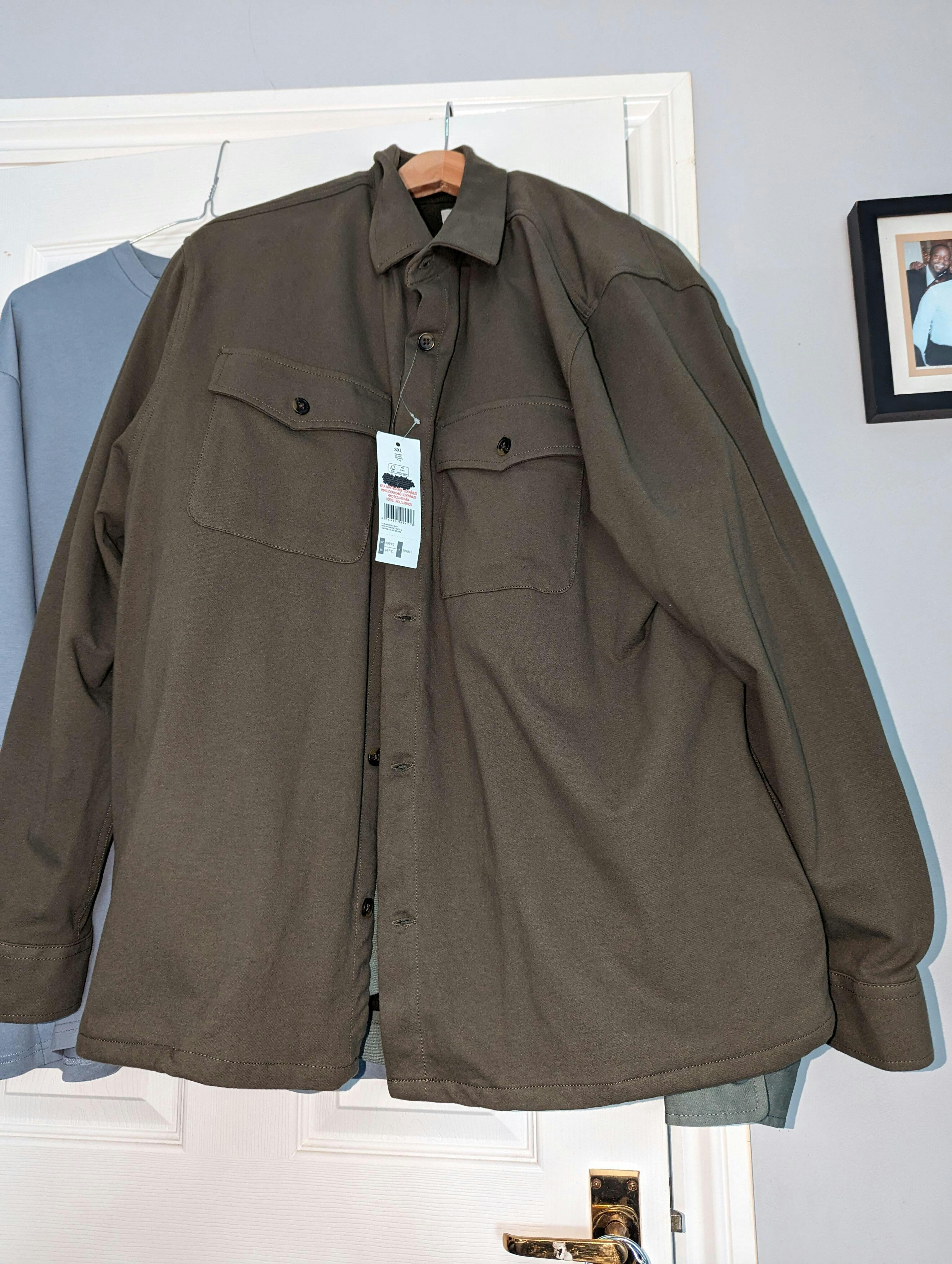 This shacket has long sleeves for added warmth. It also boasts two spacious chest pockets with button-up fastenings, providing functional storage for your essentials. Whether worn as an outer layer or a standalone piece, this khaki shacket is a must-have addition to your wardrobe. It's perfect for completing any casual ensemble.