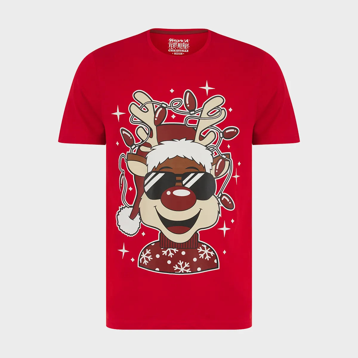 A cheerful festive tee that adds instant fun to your holiday wardrobe. Made from soft, breathable cotton, it features a bright reindeer graphic decorated with colourful string lights for a playful seasonal look. Comfortable, easy to wear, and perfect for relaxed Christmas gatherings or everyday December outfits.