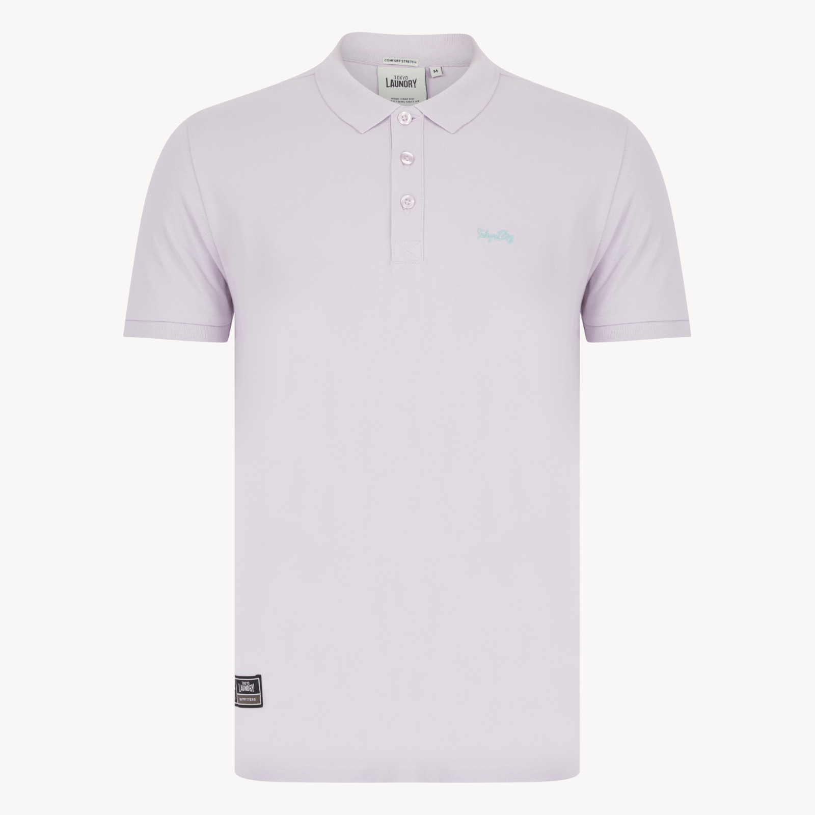 Designed with a button placket, chest embroidery, and a woven hem badge, it balances clean style with subtle detailing for a sharp, everyday look.