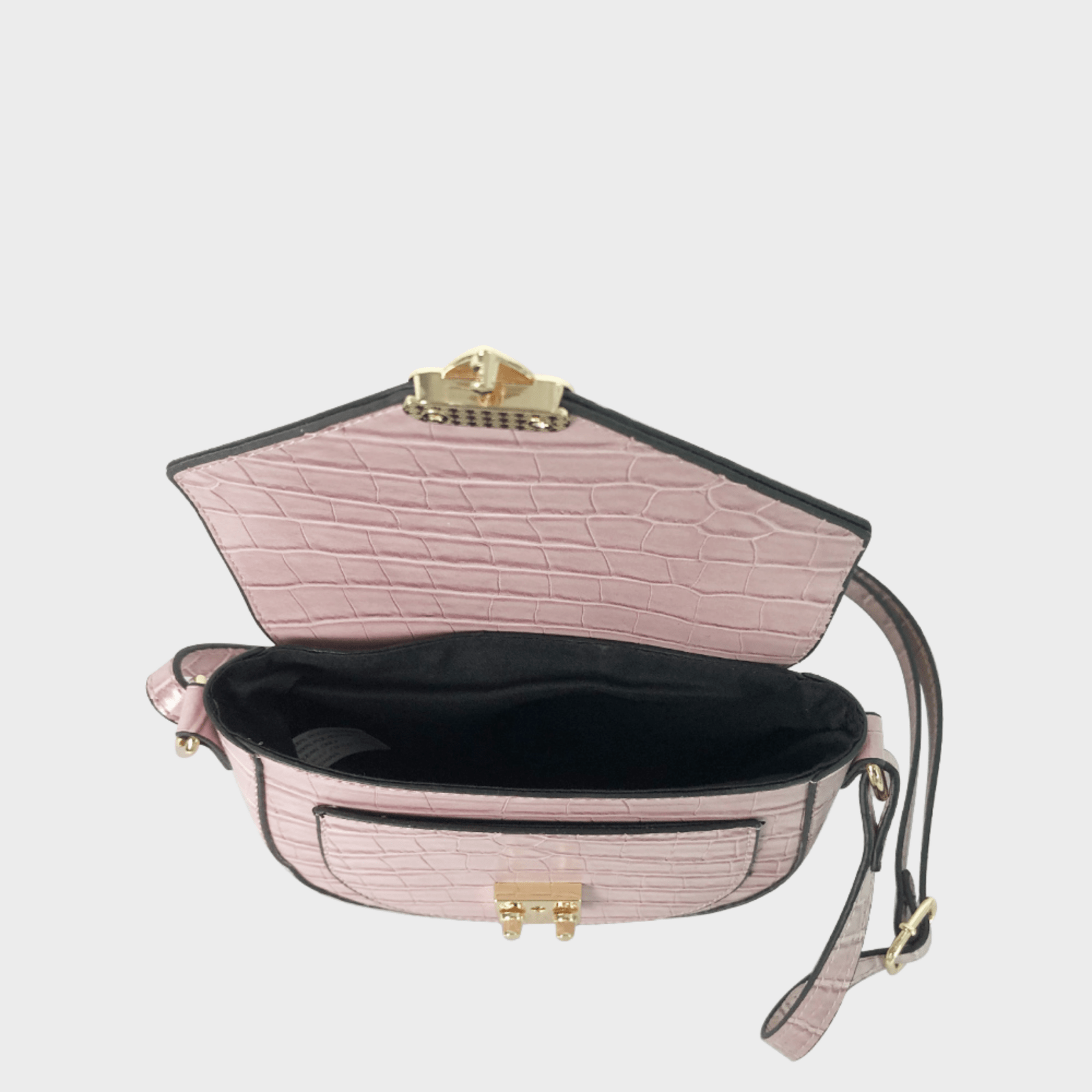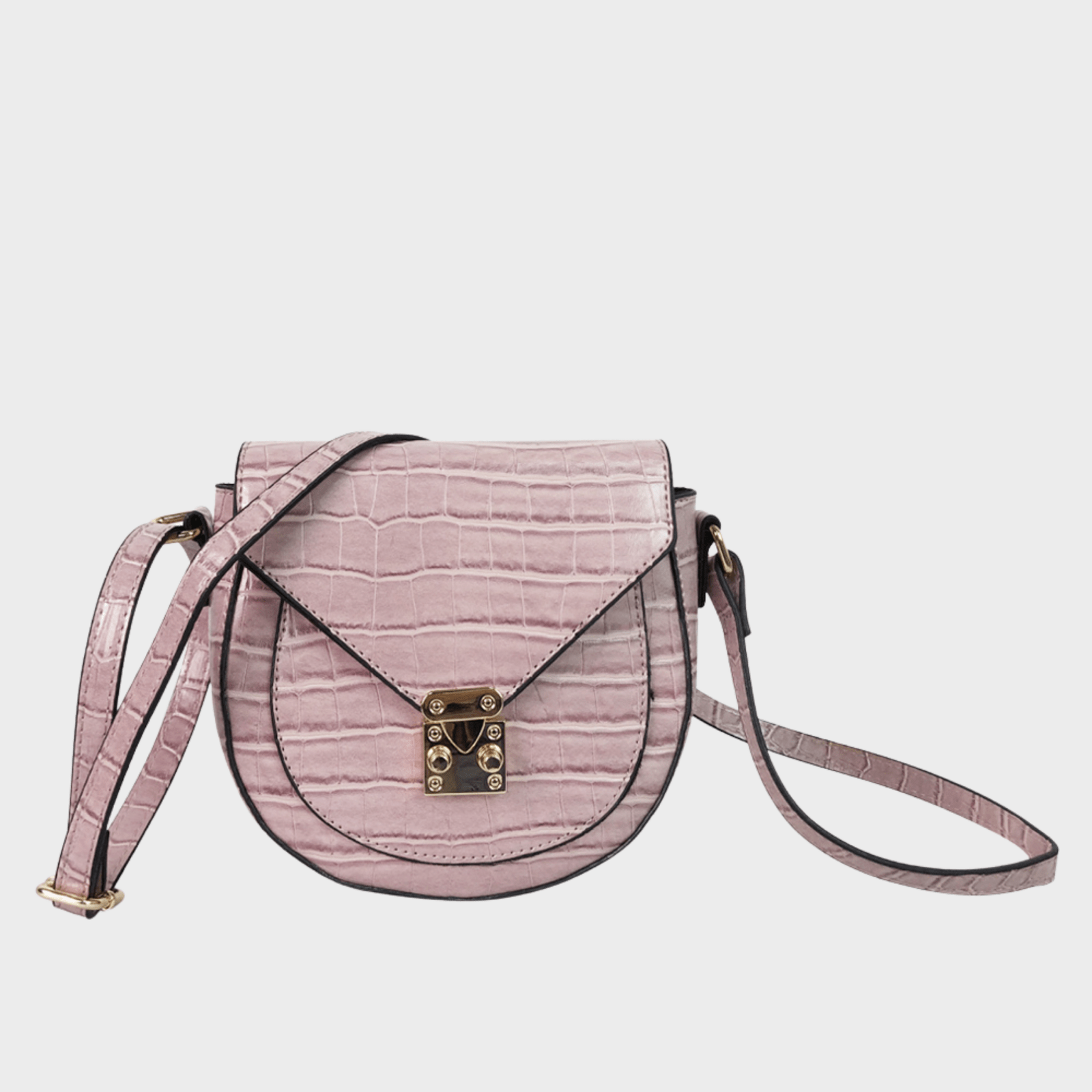 Pink Faux Croc Crossbody Bag