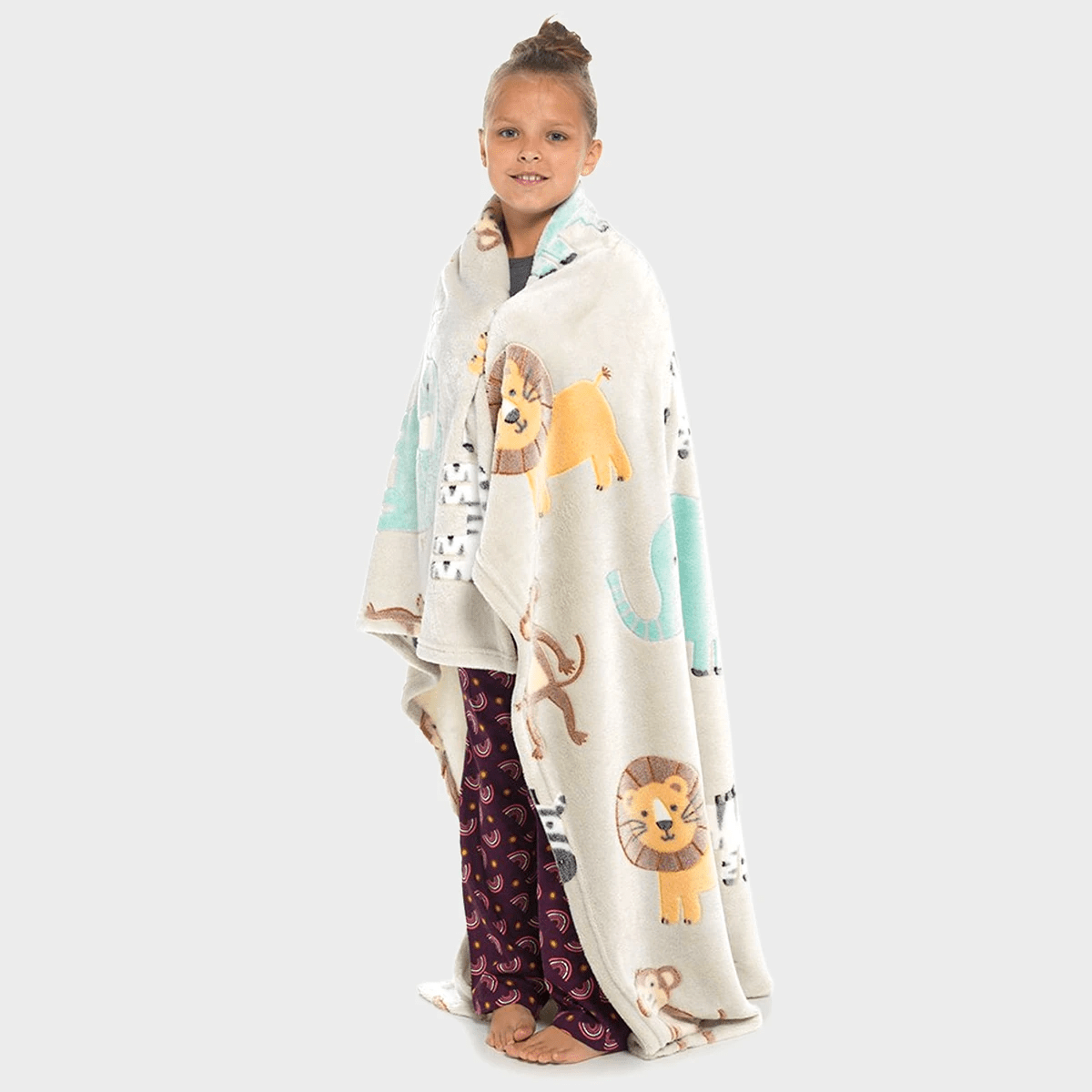 Bring bedtime to life with this Safari Print Glow in the Dark Throw! Soft, snuggly, and full of fun, it features a playful safari animal print that glows when the lights go out – perfect for adding a magical touch to any child’s bedroom. Ideal for cosy nights in, story time, or movie evenings, this throw keeps little ones warm and comforted.