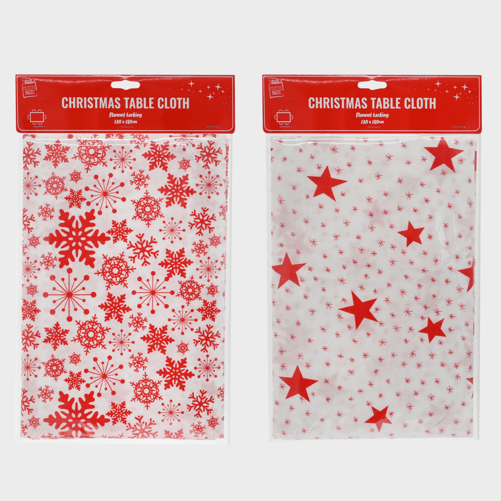 Table cloth red rect asst. A practical and festive addition to your dining area, this rectangular table cloth is perfect for family meals, parties, or seasonal gatherings. The red finish adds warmth and cheer, making it ideal for both everyday use and Christmas celebrations. Lightweight yet durable, it provides reliable protection for your table while being easy to fold and store when not in use. The assorted designs give you a variety of options to suit different occasions and décor styles. Perfect for creating a welcoming setting with minimal effort, it combines functionality with seasonal charm. As a cut label product, it offers the same quality for less, helping you save money while dressing your table in style.