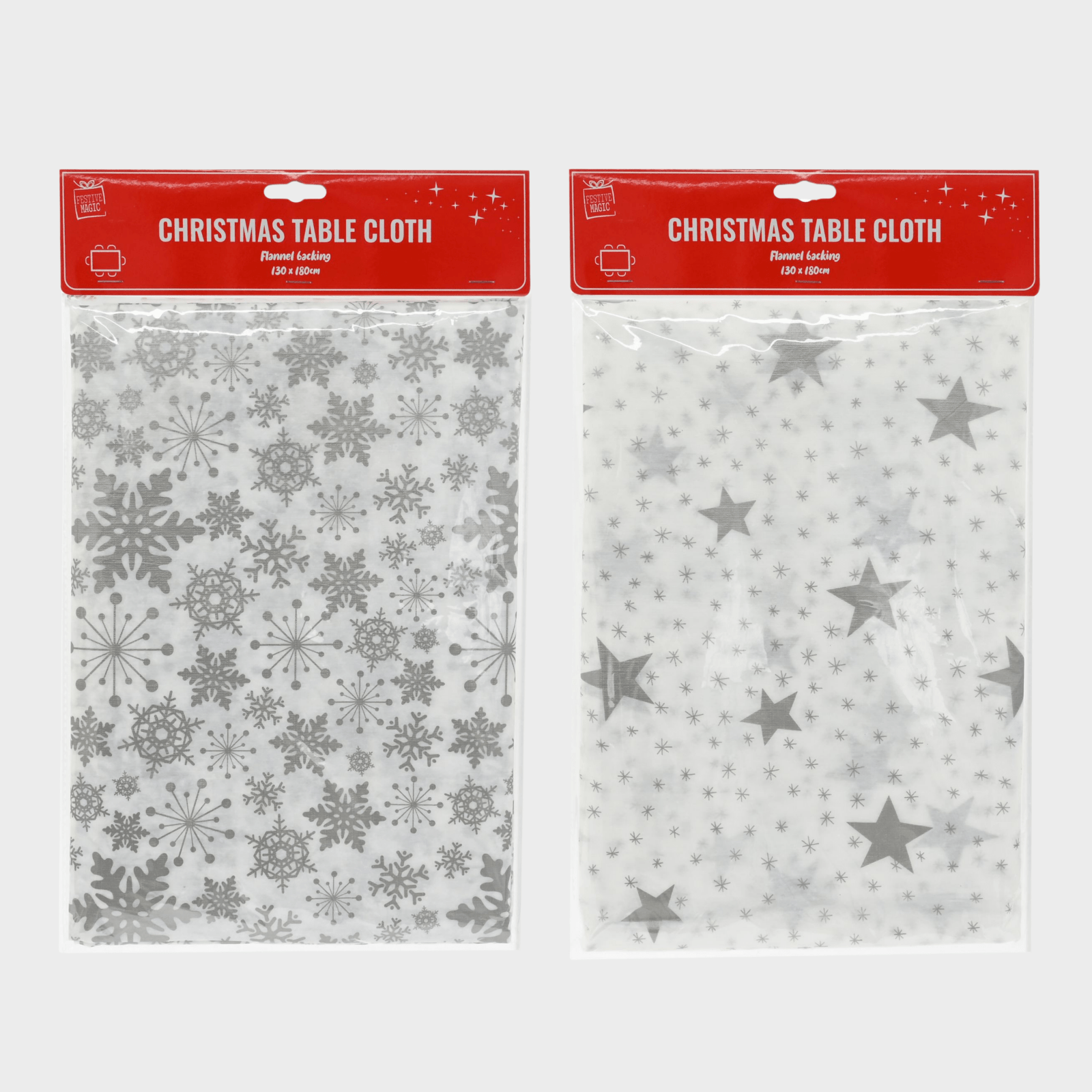 Table cloth silver rect asst. A stylish and practical choice for dining, this rectangular table cloth is perfect for everyday meals, parties or festive gatherings. The silver finish adds a touch of elegance and sparkle, making it ideal for Christmas celebrations, special occasions or simply brightening up your table. Lightweight yet durable, it offers reliable protection for your table while being easy to fold and store when not in use. The assorted designs provide variety, so you can choose a look that suits your setting. Combining practicality with seasonal charm, it creates an inviting atmosphere with ease. As a cut label product, it gives you the same dependable quality for less, helping you save money while dressing your table beautifully.
