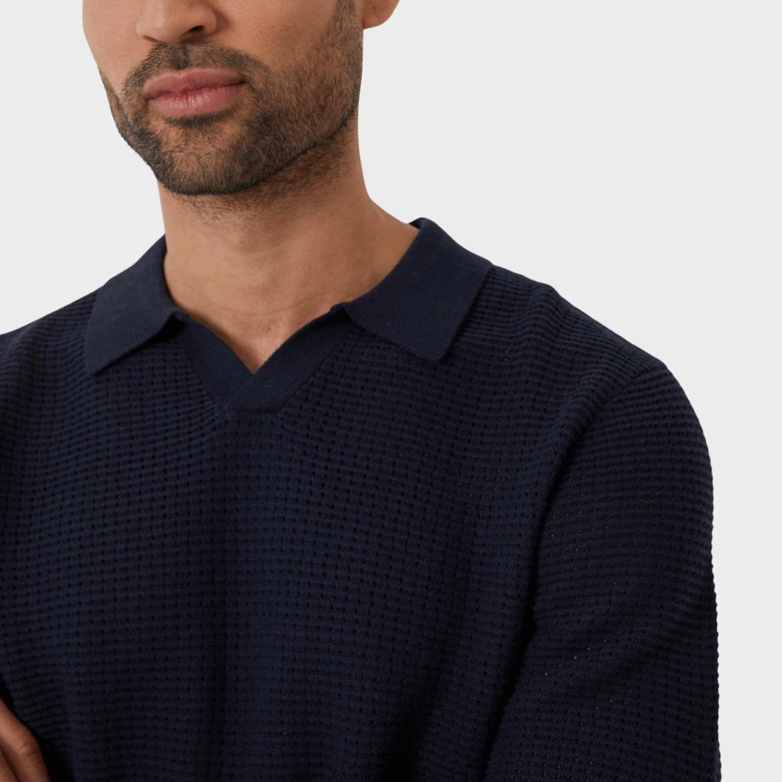 Threadbare Men's Navy Long Sleeve Polo Jumper